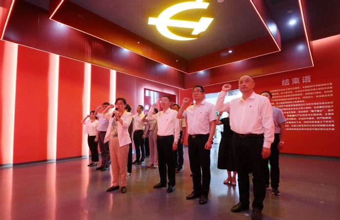 参观结束后,全体党员干部整齐排列,面向党旗,重温入党誓词,用铮铮誓言宣示着对党的坚定信念和为党的事业奋斗终身的决心。