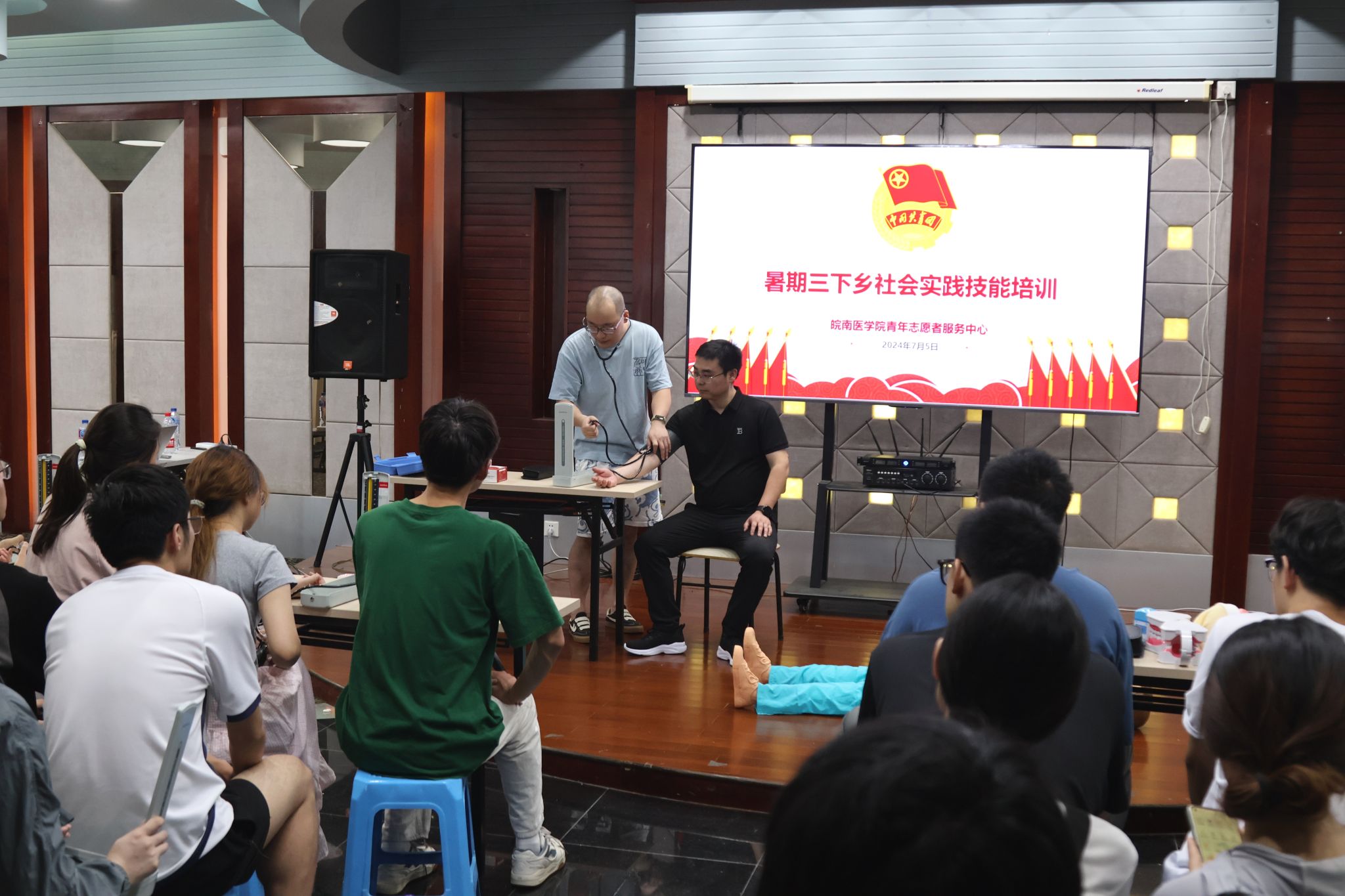 7月初,实践团成员们在期末考试一结束便投入到紧张的筹备中,有序完成了安全教育、节目编排、宣传材料编印、物资设备购买等准备工作。为提升团队医疗服务能力,特邀两位二附院急诊科专家为团队成员做义诊和急救知识培训。队员们开展“杏林小讲堂”集体备课,就医学科普的主要课程内容进行多次讨论、备课与试讲。8日早上8:40,团队召开行前动员会,强调安全纪律,提出希望要求,确保本次暑期“三下乡”社会实践活动安全有序开展。