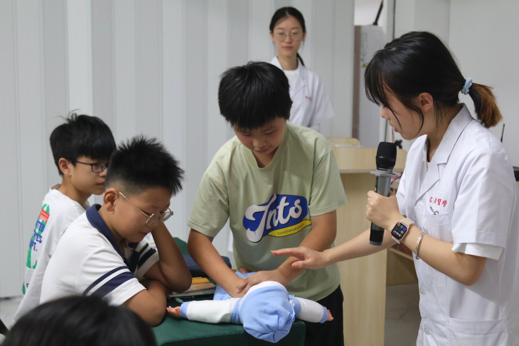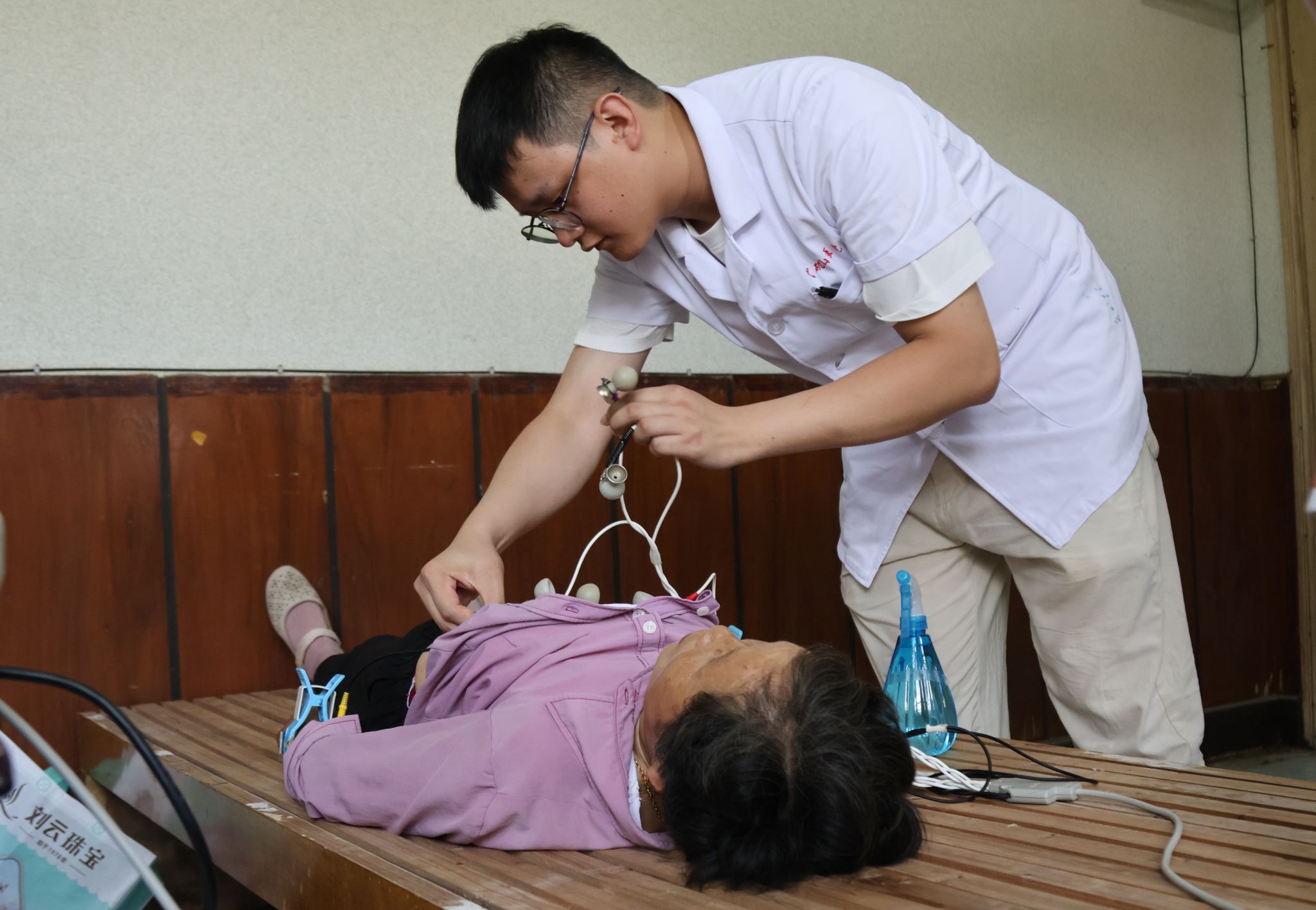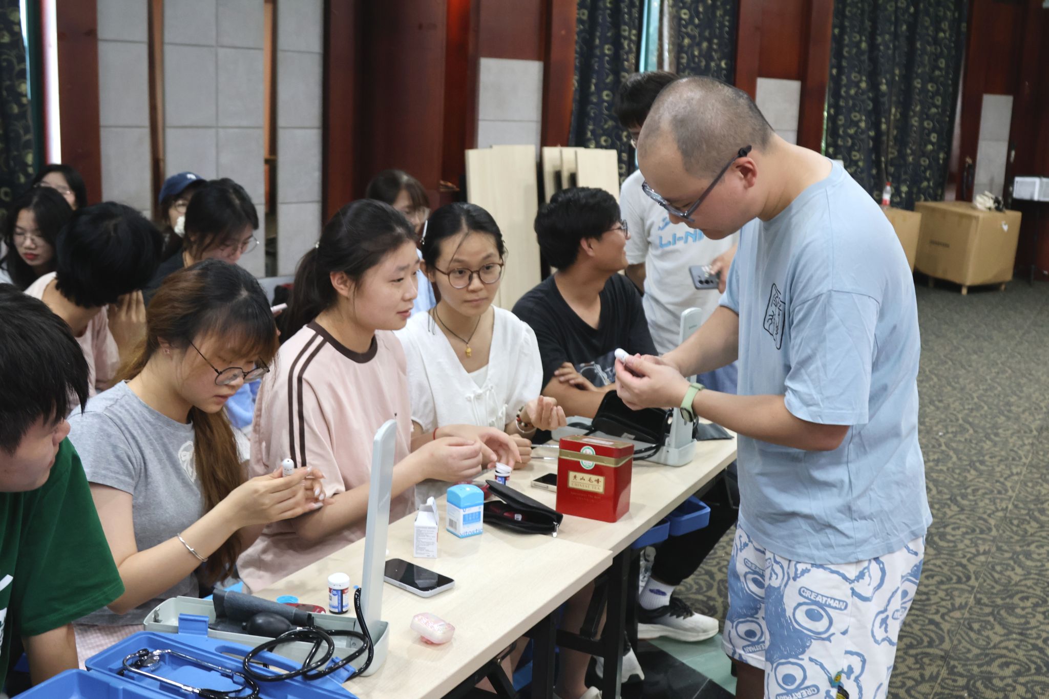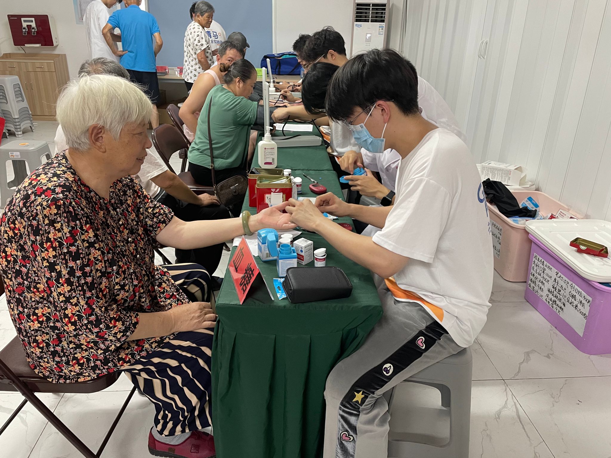 9日、10日上午艳阳高照,气温骤热,但实践队员们的热情丝毫不减,团队师生联合附院专家开展“双报到”活动,将“专家+大学生”的健康服务品牌送到仁里镇和翠微社区的群众“家门口”,为闻讯前来的居民们提供血压、血糖、心电图、B超等基础健康体检项目。来自附院的临床专家耐心细致地为居民们提供诊疗咨询和用药指导,实践队员们则积极运用专业知识为排队等待中的居民针对常见病、慢性病及多发病的预防和治疗进行通俗易懂的解答和健康宣教。义诊活动现场的另一边,实践队员们搭起了“杏林小讲堂”,用通俗易懂的语言、生动形象的演示,为辖区内的居民们带来了我校第三届医学人文节医学微课比赛遴选打造的“呵护从“齿”开始”“‘救’在身边”等医学科普金课。队员们通过互动式讲解和手把手教学,将听得懂、学得会、用得上的健康科普知识和应急救护技能传递给现场的大人和小朋友们。活动结束后,家住翠微社区的宋大姐感叹道:“这样的活动太好了,要是能经常来就好了!”