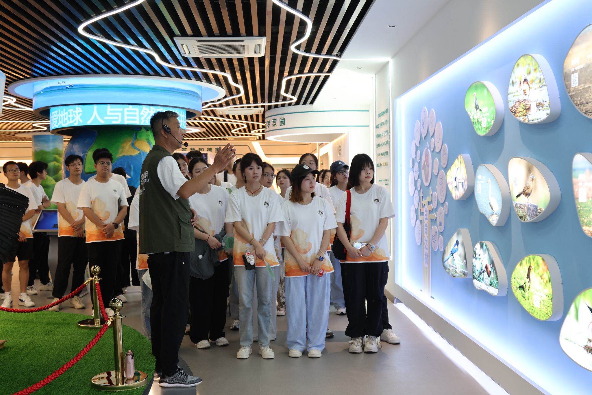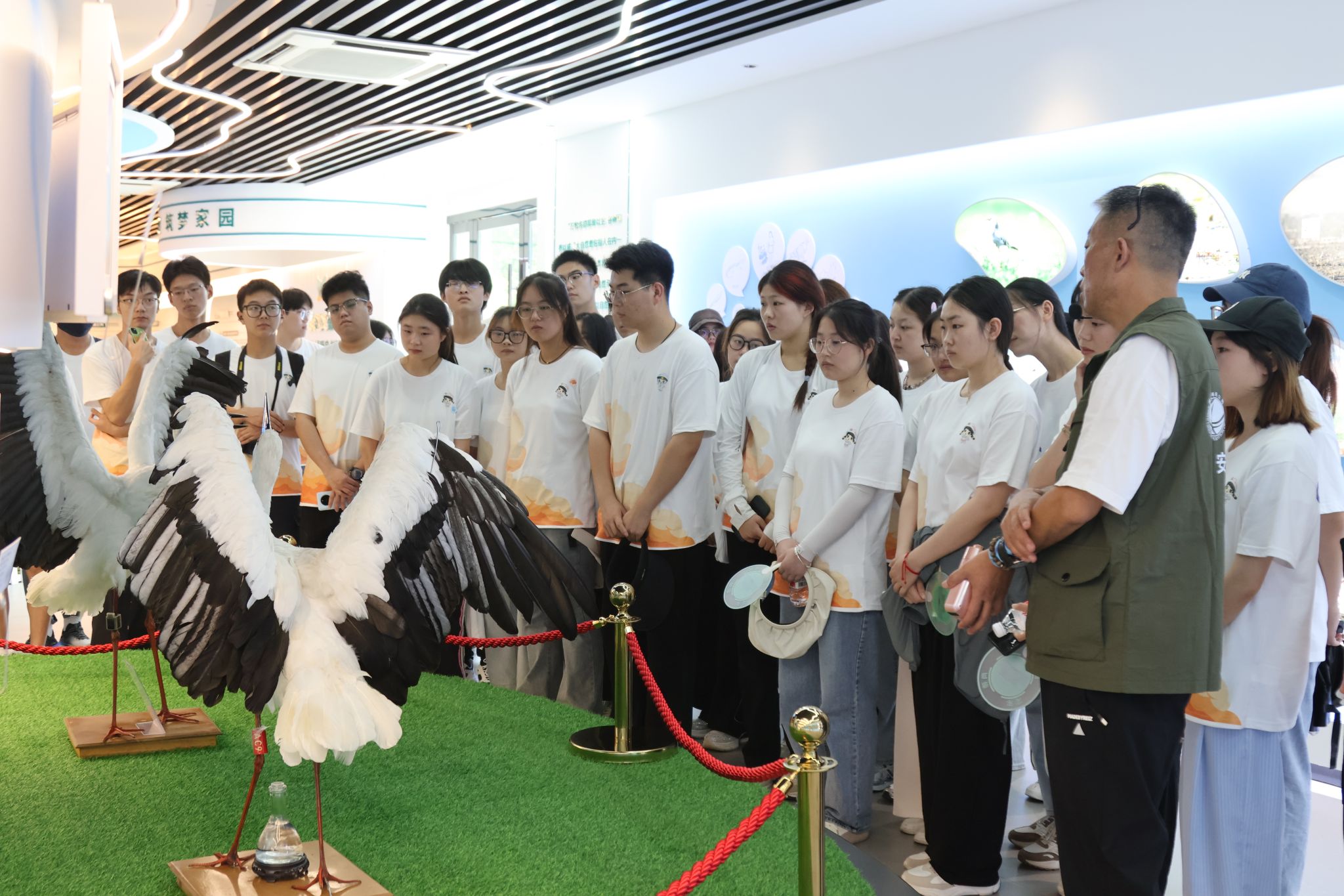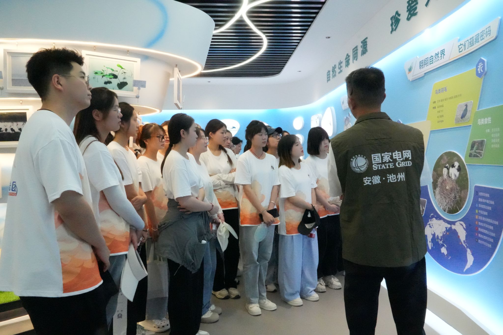 9日下午,实践团一行来到池州市国网安徽电力汪堤护线爱鸟创新工作站参观学习。实践队员们跟随着工作站领衔人汪湜老师的脚步,欣赏镜头下记录的鸟类生态摄影照片、观察场馆内的鸟类标本、聆听每幅作品背后的感人故事,加深了对生物多样性的认识,深刻认识到美丽中国建设的重要意义。随后,实践团前往平天湖生态湿地公园开展提升生态文明建设专题调研,并进行了绿色环湖骑行活动,引导大家争做低碳生活的倡导者、践行者和传播者。骑行结束后,队员们在草地上围坐一圈,以草地座谈会的形式围绕习近平生态文明思想,就如何践行“绿水青山就是金山银山”的理念、接过建设美丽中国的接力棒、争做文明先锋,进行了交流发言。