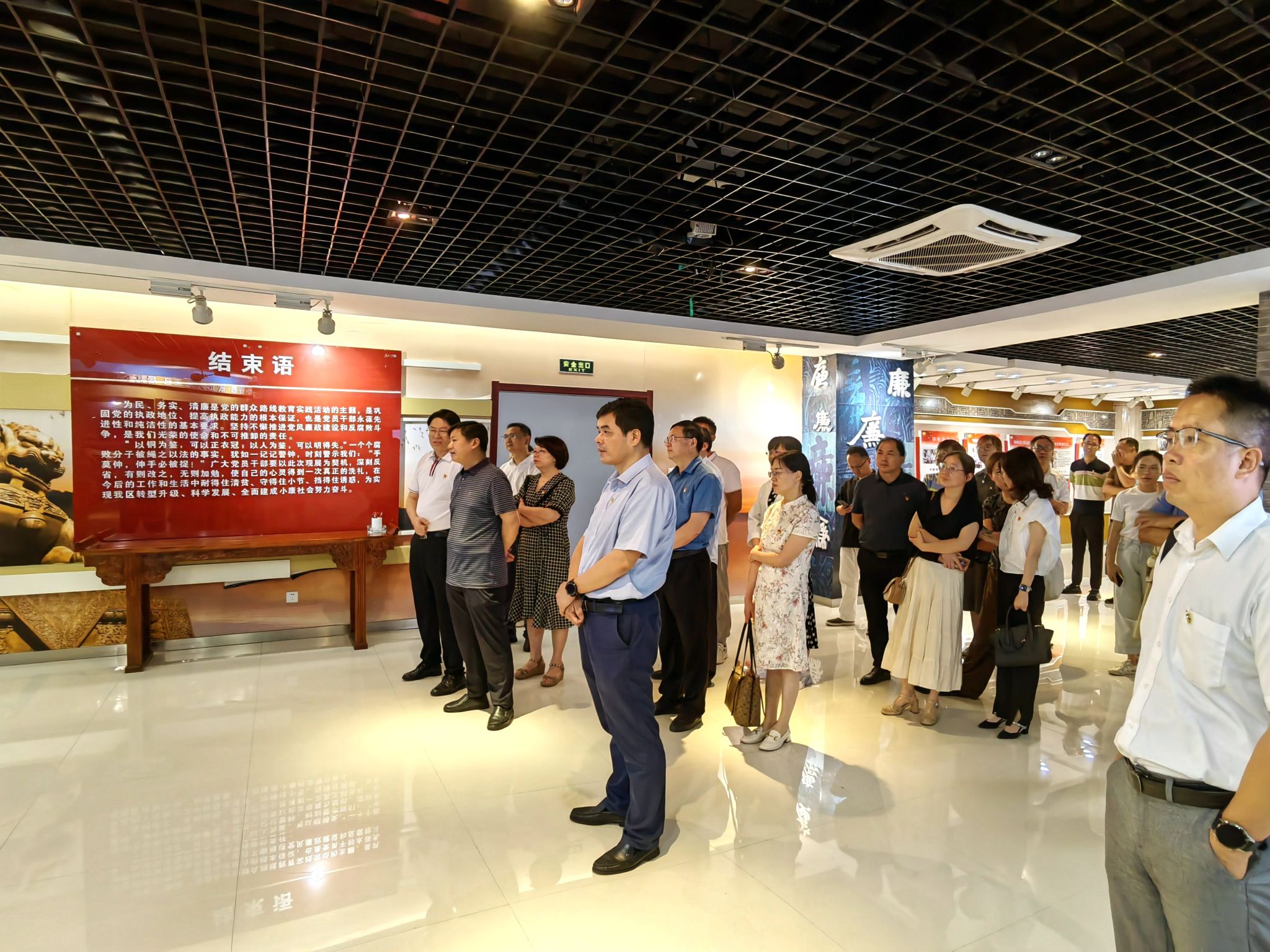 在廉政教育馆中,全体成员在讲解员的引导和解读下,通过聆听现场讲解、浏览图文展板、观看视频资料等方式,依次参观了“纠风肃纪 寸步不让”“反腐治贪 纪法贯通”“作茧自缚 失足成恨”“囹圄哀苦 悔不当初”“注重预防 警钟长鸣”等篇章。一桩桩鲜活的案例、一行行警醒的文字、一幕幕生动的影像为参观人员敲响了遵纪守法、拒腐防变的警钟。而展馆中“勤廉典范 清风高扬”篇章展示的先进代表,也为大家树立了学习榜样。