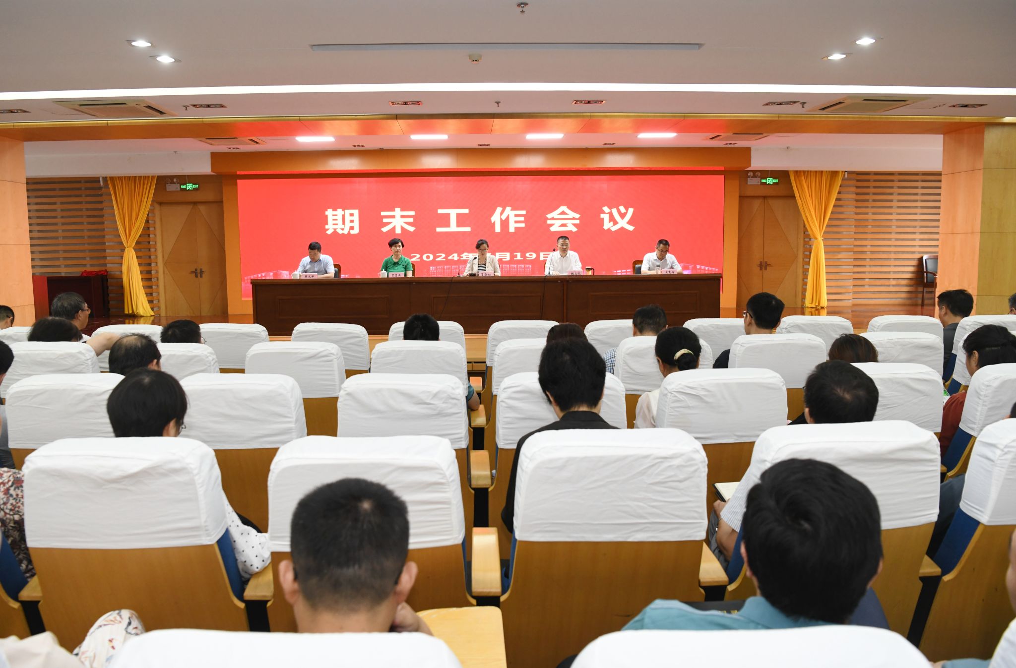 7月19日,我校在图书信息楼学术报告厅召开期末工作会议,回顾总结上半年主要工作,部署暑期重点任务。在校校领导夏劲松、姚应水、贾贤燕、文育锋、韩永升出席会议。会议由党委书记夏劲松主持。