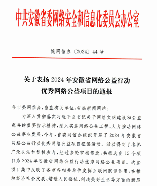 我校获2024年安徽省网络公益行动优秀项目并受到省委网信办表扬