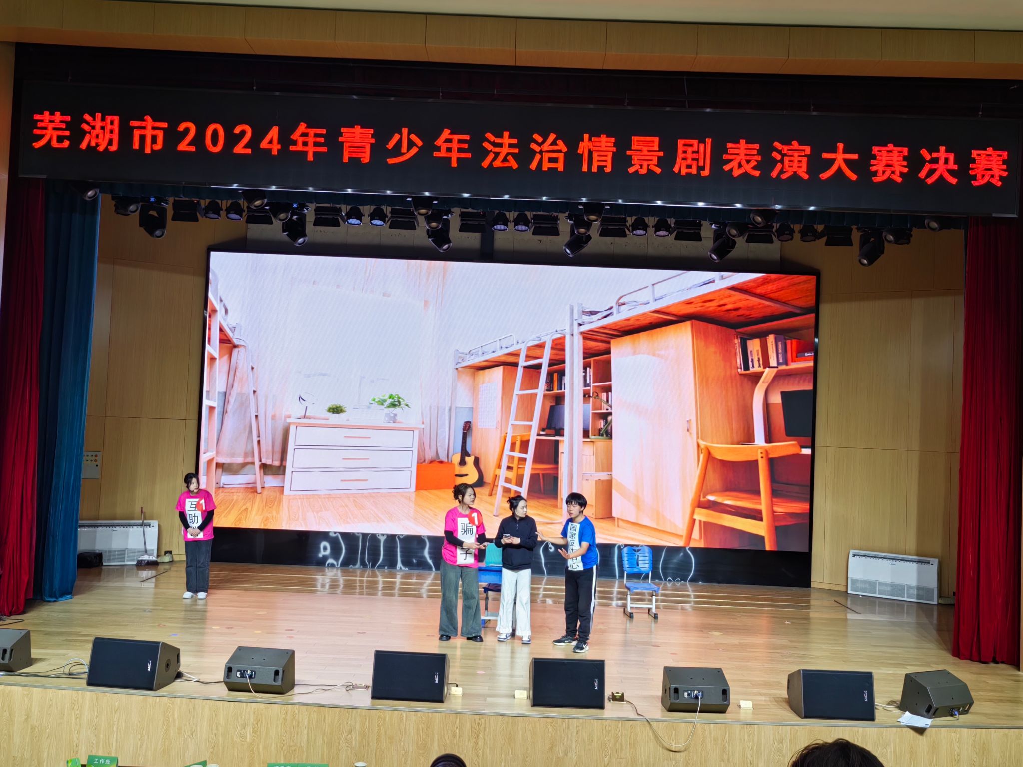 12月8日,芜湖市2024年青少年法治情景剧表演大赛决赛在芜湖市中江小学成功落幕。我校报送的原创情景剧《不上你的当》在全市大中小学共计62件参赛作品中脱颖而出,以反电诈主题赛道最高分的成绩获一等奖。