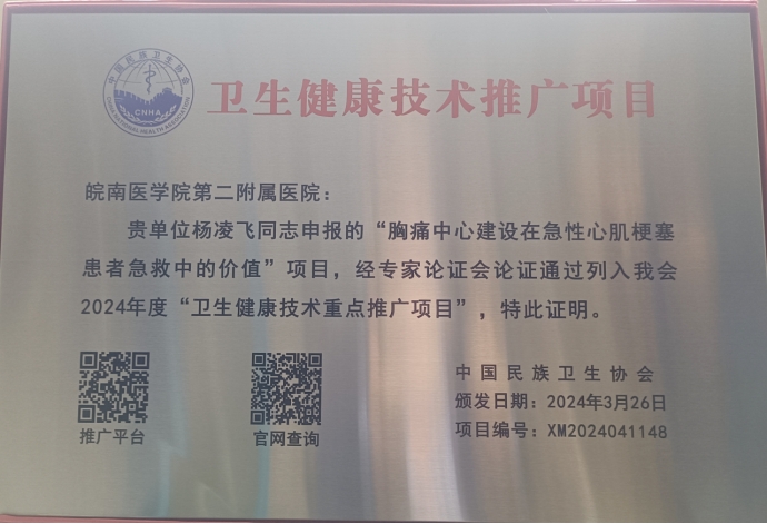 二附院心血管内科项目入选全国卫生健康技术重点推广项目