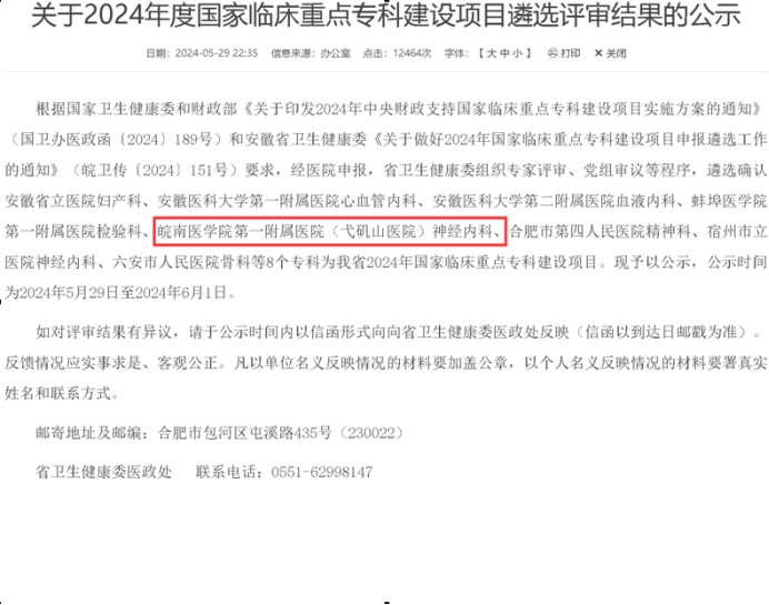 一附院神经内科获批国家临床重点专科
