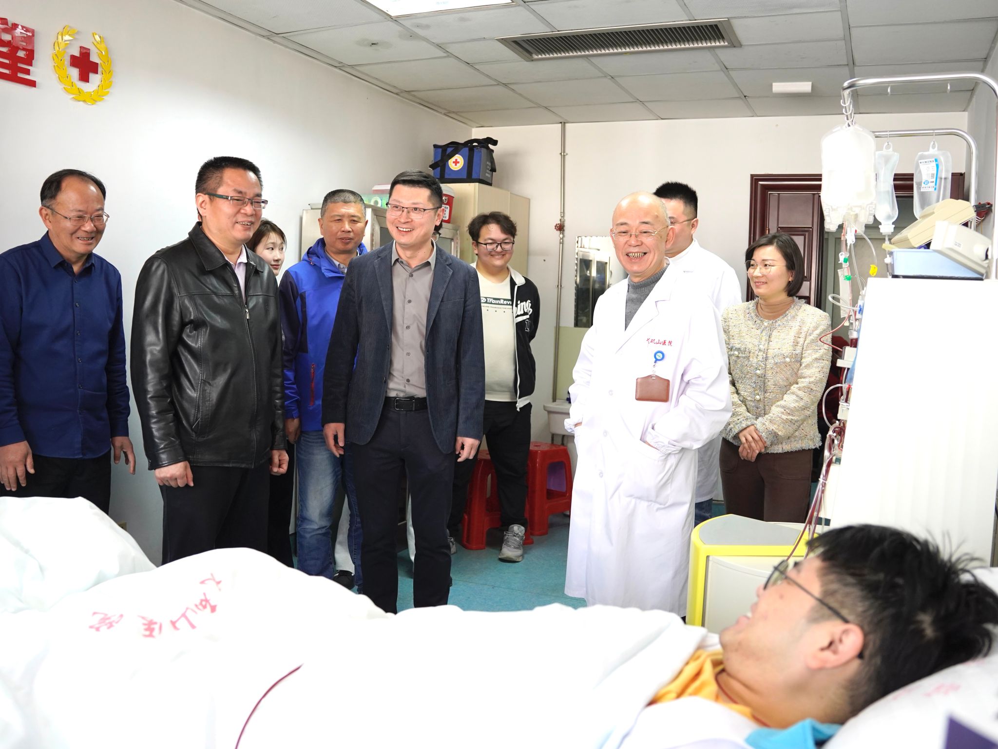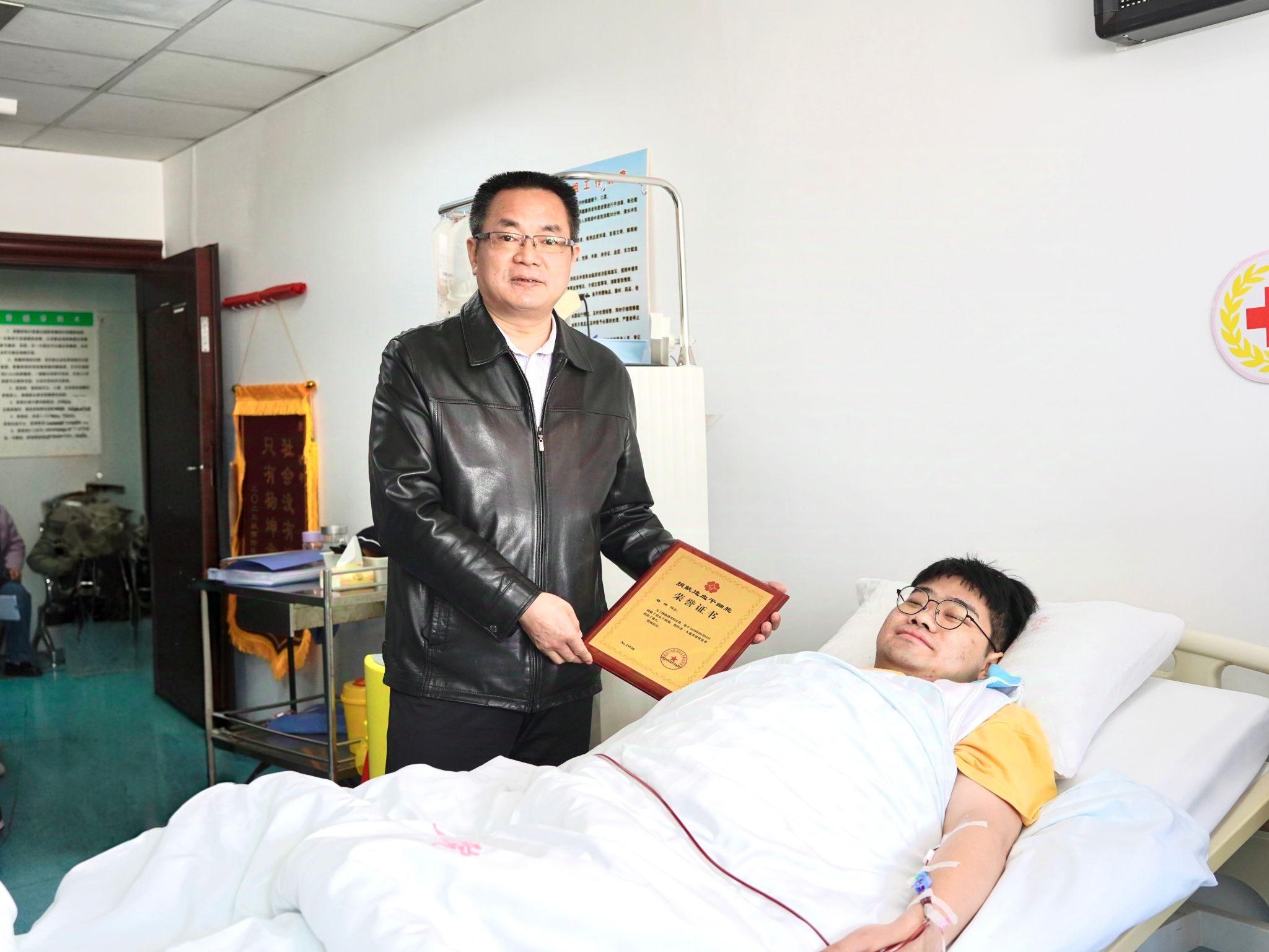 捐献当天,学校党委常委、副院长文育锋,公共卫生学院党政领导、年级辅导员和班级学生代表共同来到第一附属医院看望杨坤同学,见证了这场大爱无疆的“生命接力”。文育锋代表学校向杨坤同学表达了关心和慰问,对他的大义善举给予了高度赞扬,表示其行为不仅挽救了患者的生命,同时为全校师生树立了热心公益、无私奉献的好榜样。