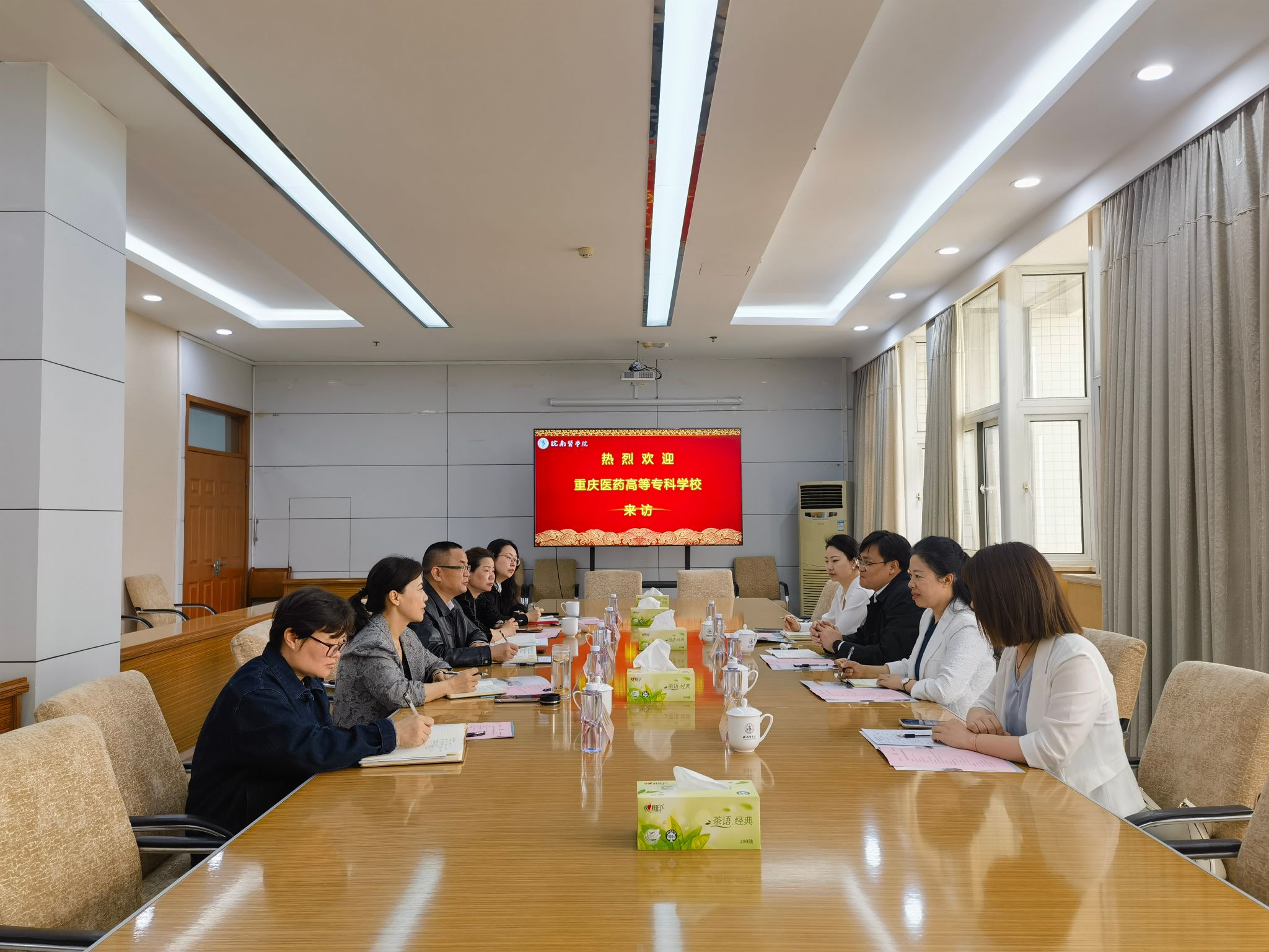 4月16日上午,重庆医药高等专科学校党委委员、副校长兰作平一行4人来我校调研交流,受到副院长文育锋的热情接待。