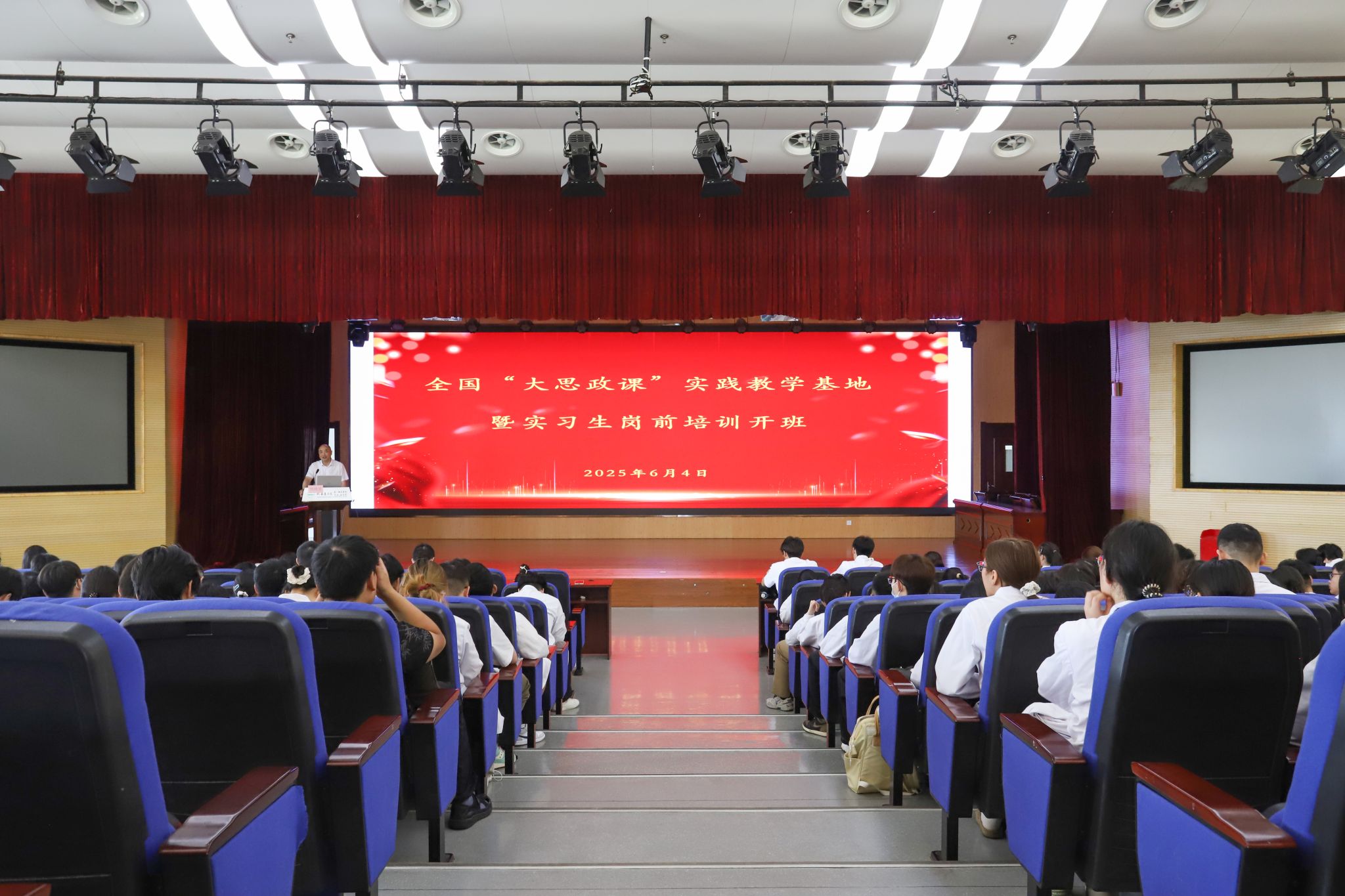 6月4日上午,我校第一附属医院在10号楼10楼报告厅举行全国“大思政课”实践教学基地启用暨2025年度实习生岗前培训开班式,共同见证基地揭牌启用,师生同上思政“第一课”。第一附属医院党委书记陈晓宏、副院长赵军,相关职能科室负责人、教师代表、2025年度实习生共200余人参加仪式。赵军主持仪式。