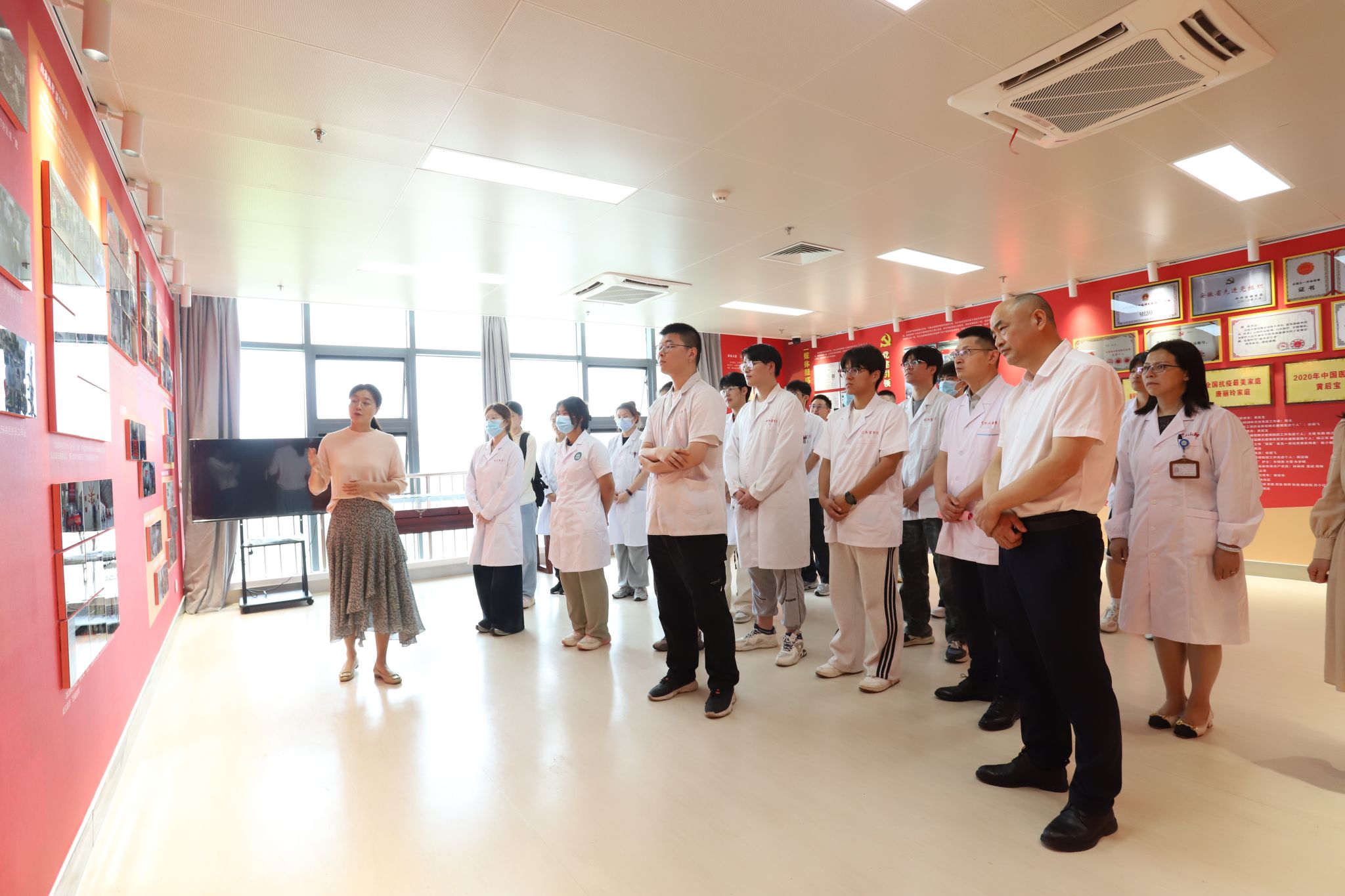 随后,医院领导、教师代表和全体实习生共同在全国“大思政课”实践教学基地进行思政课实践教学。现场,授课教师的生动讲解,一幅幅感人的照片,一件件珍贵的实物,让大家深刻感悟了生命至上、举国同心、舍生忘死、尊重科学、命运与共的伟大抗疫精神,强化了坚守医者初心、勇担健康使命的责任担当。