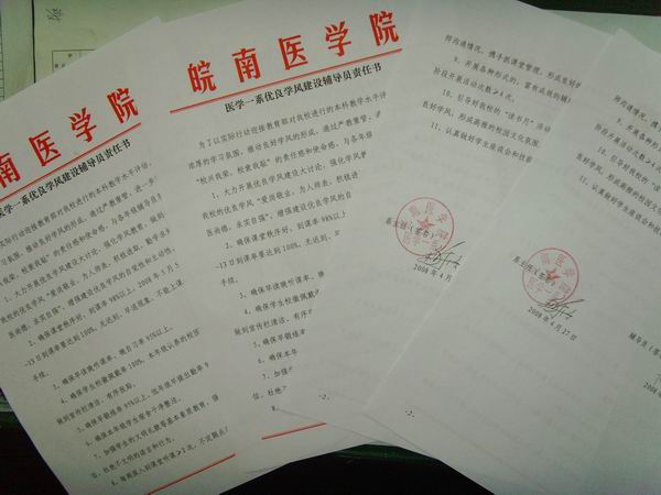 会上,杨新庆同志与各年级辅导员签订了责任书,并强调学风建设签字仪式不仅是签在纸上,更要记在心上,要切实把校风、学风建设落到实处,继续发扬我校的积极进取,勤学求知,奋发成才,精医尚德,求实自强的优良学风。