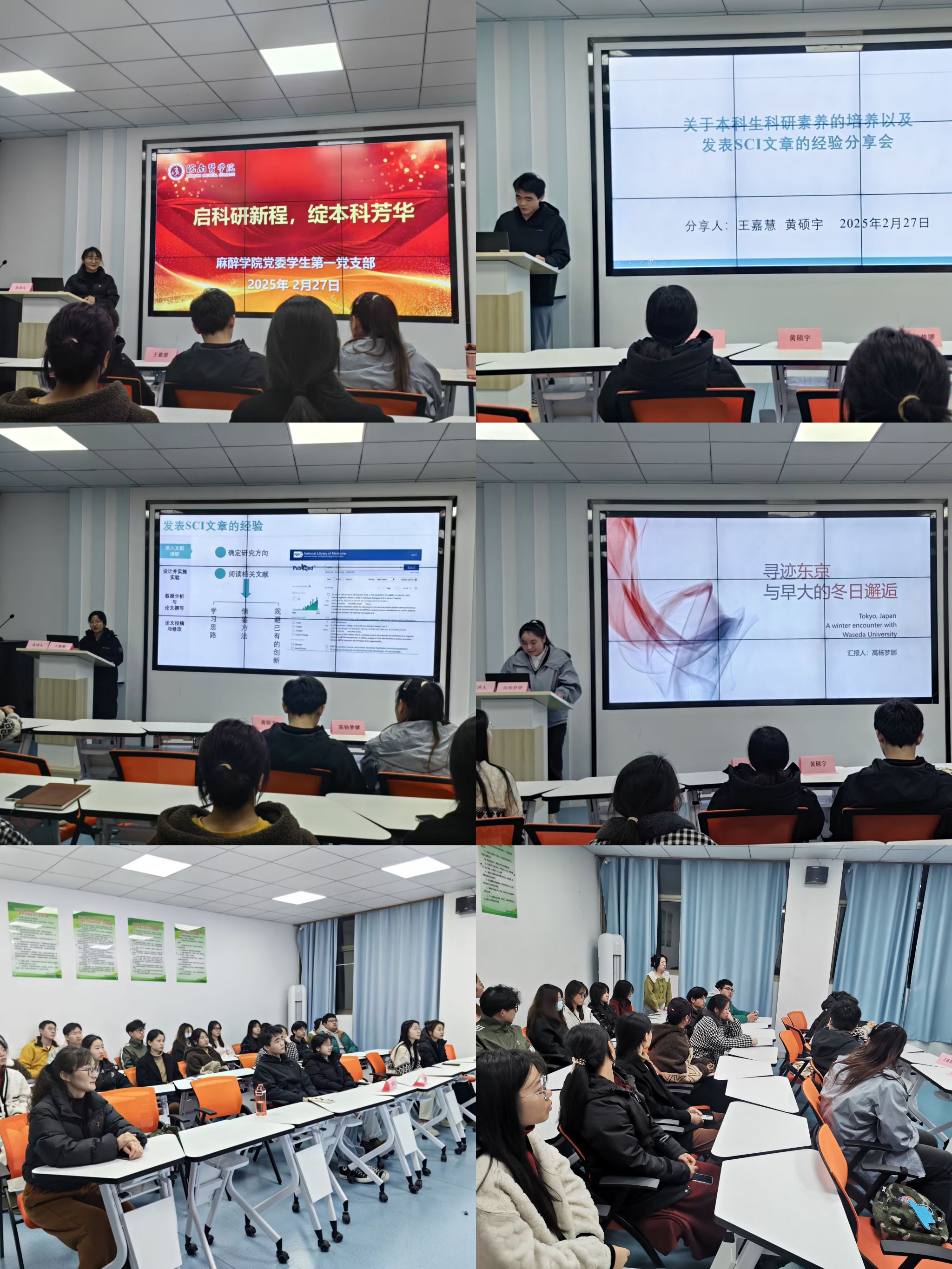 2月27日晚,麻醉学院举办"启科研新程  绽青春芳华"本科生科研先锋宣讲会。会议由学生第一党支部书记房尚萍主持,支部部分入党积极分子参与,现场学术氛围浓厚。