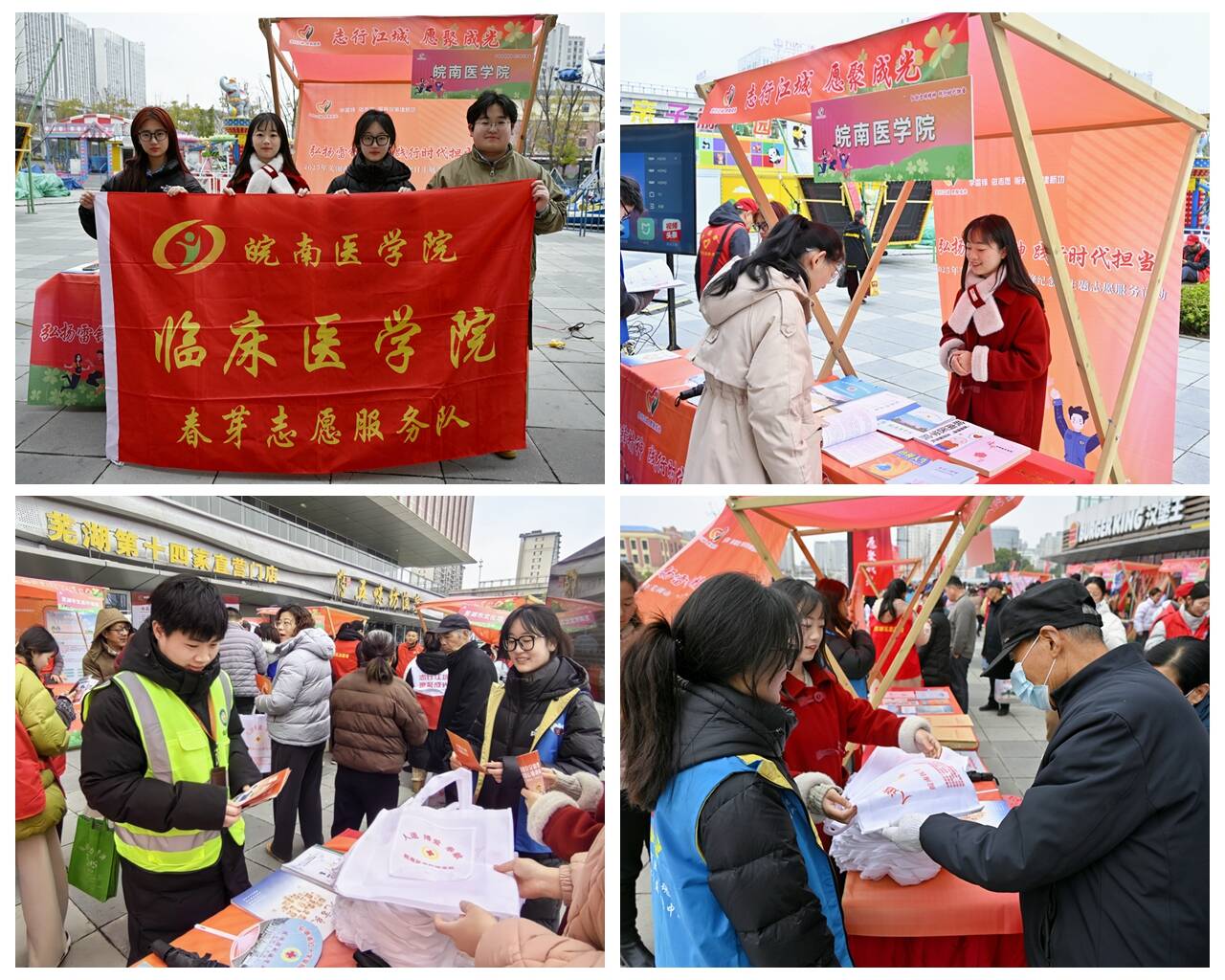 3 月 5 日上午,临床医学院学生代表受邀参加芜湖市 "3・5" 学雷锋纪念日主题志愿服务活动。在鸠兹广场公益集市现场,学院特别设立遗体捐献宣传展台,通过图文展板、宣传手册、案例讲解等形式,向市民普及遗体捐献的社会价值与法律规范。志愿者们耐心解答群众疑问,用真实案例讲述生命延续的感人故事,呼吁更多市民加入到这项 "生命接力" 的公益事业中来。活动期间累计发放宣传资料 200 余份,接待咨询市民百余人次,以实际行动诠释了 "奉献、友爱、互助、进步" 的志愿精神。