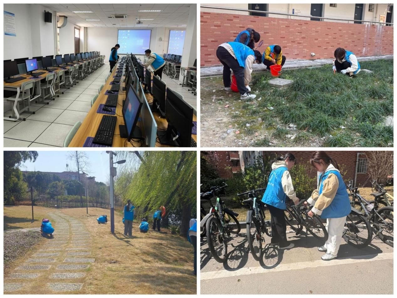 3月17日至23日,志愿者们身穿统一服装,分成多个小组,对校园的部分区域进行了细致清理。他们认真清扫学院机房,校园道路、草坪、小西湖,教学楼等公共区域的垃圾,整理摆放凌乱的自行车。此活动将劳动教育与文明创建相结合,让雷锋精神在点滴行动中生根发芽。