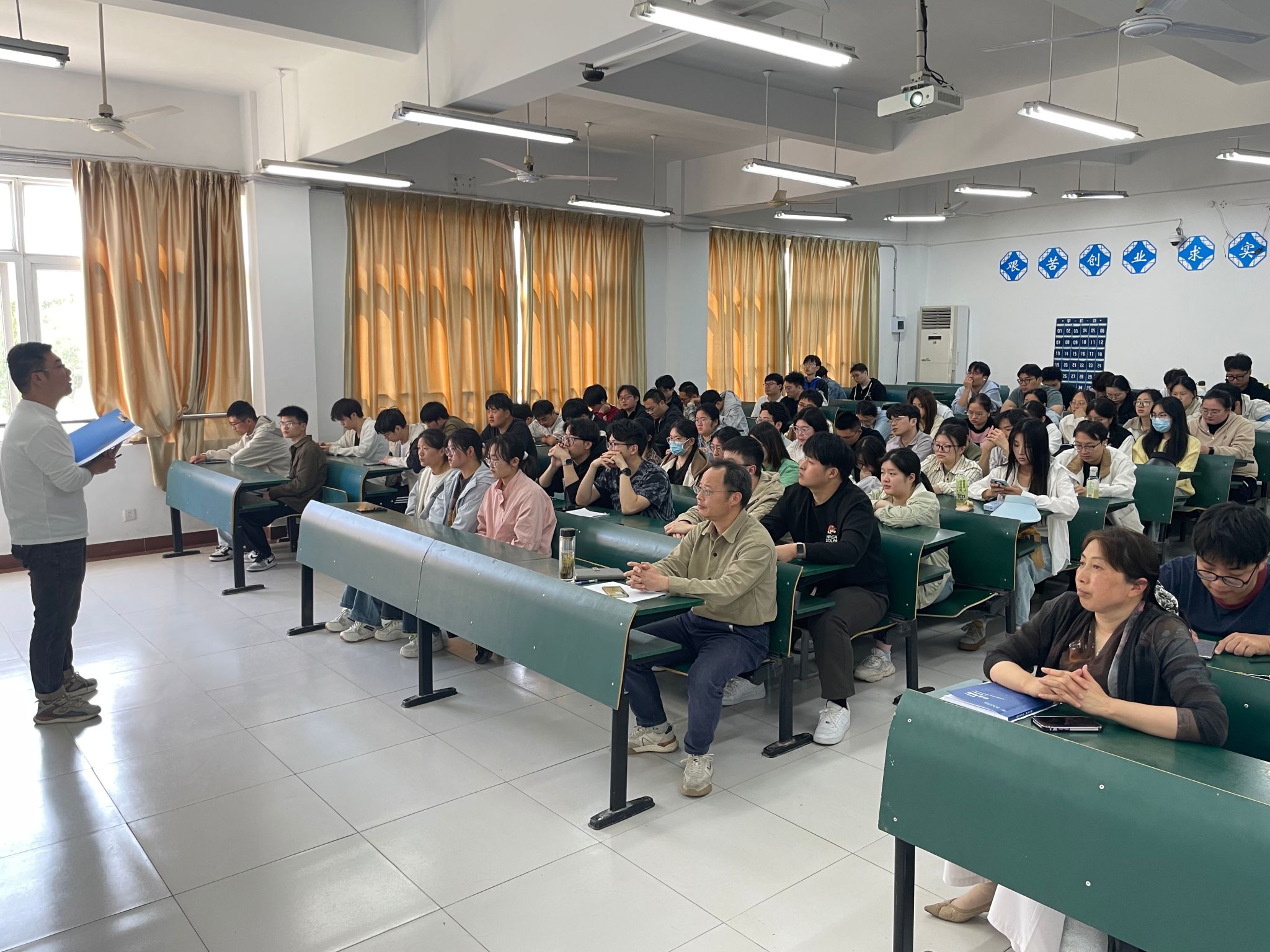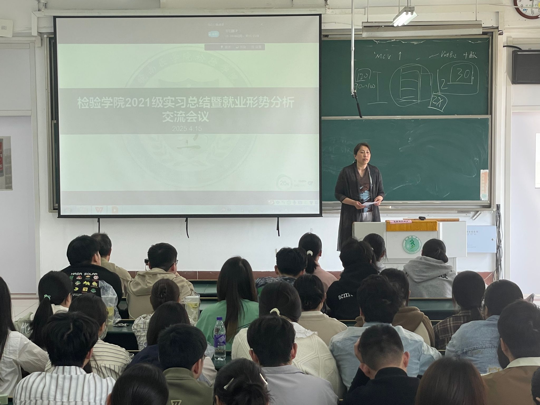 为做好实习生实习返校和就业工作,帮助学生明确离校前的各项工作流程和安排,引导学生树立正确的就业观、择业观,增强风险防范意识,检验学院于4月15日在滨江校区(南区)西三教学楼召开2021级实习总结暨就业形势分析交流会。学院党委书记刘影、院长洪亮、辅导员曹玉祥及2021级全体毕业生参加会议,会议由曹玉祥主持。