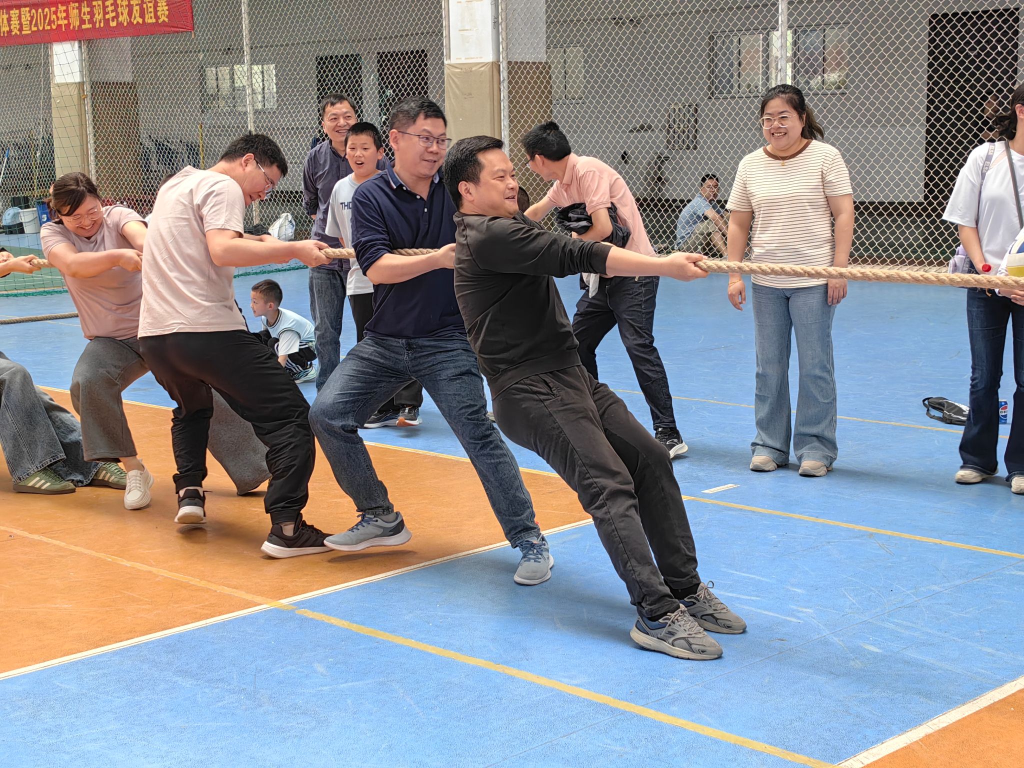 集体项目“旱地冰壶”将传统冰壶运动的竞技智慧与趣味性巧妙融合,每队成员明确分工、默契配合,有人负责精准投壶,有人观察局势、制定战术,还有人指挥队友通过擦地控制冰壶滑行轨迹和速度,现场充满竞技智慧和趣味性。“果蔬连连看”是将经典游戏与运动场景相结合的创新尝试,参赛者需在规定时间内,通过接力的方式,快速找到放置在场地中的相同果蔬道具并配对成功。过程中,队员们全神贯注寻找果蔬,动作滑稽有趣,围观师生加油助威、出谋划策,互动频繁。“拔河比赛”项目成为全场焦点,教师队与学生队展开力量对决,双方紧握长绳、重心后倾,围观师生组成“啦啦队”呐喊助威,把趣味运动会气氛推向高潮。