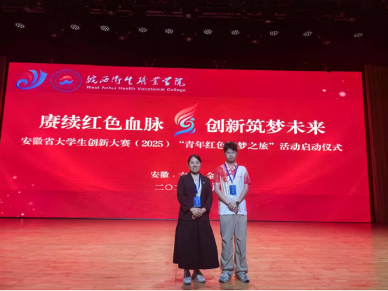 近日,口腔医学院党委副书记张晋艳带领学院2022级学生郭铠鸣代表我校红色筑梦之旅参赛项目队伍,奔赴六安金寨参加安徽省大学生创新大赛(2025)青年红色筑梦之旅活动启动仪式。