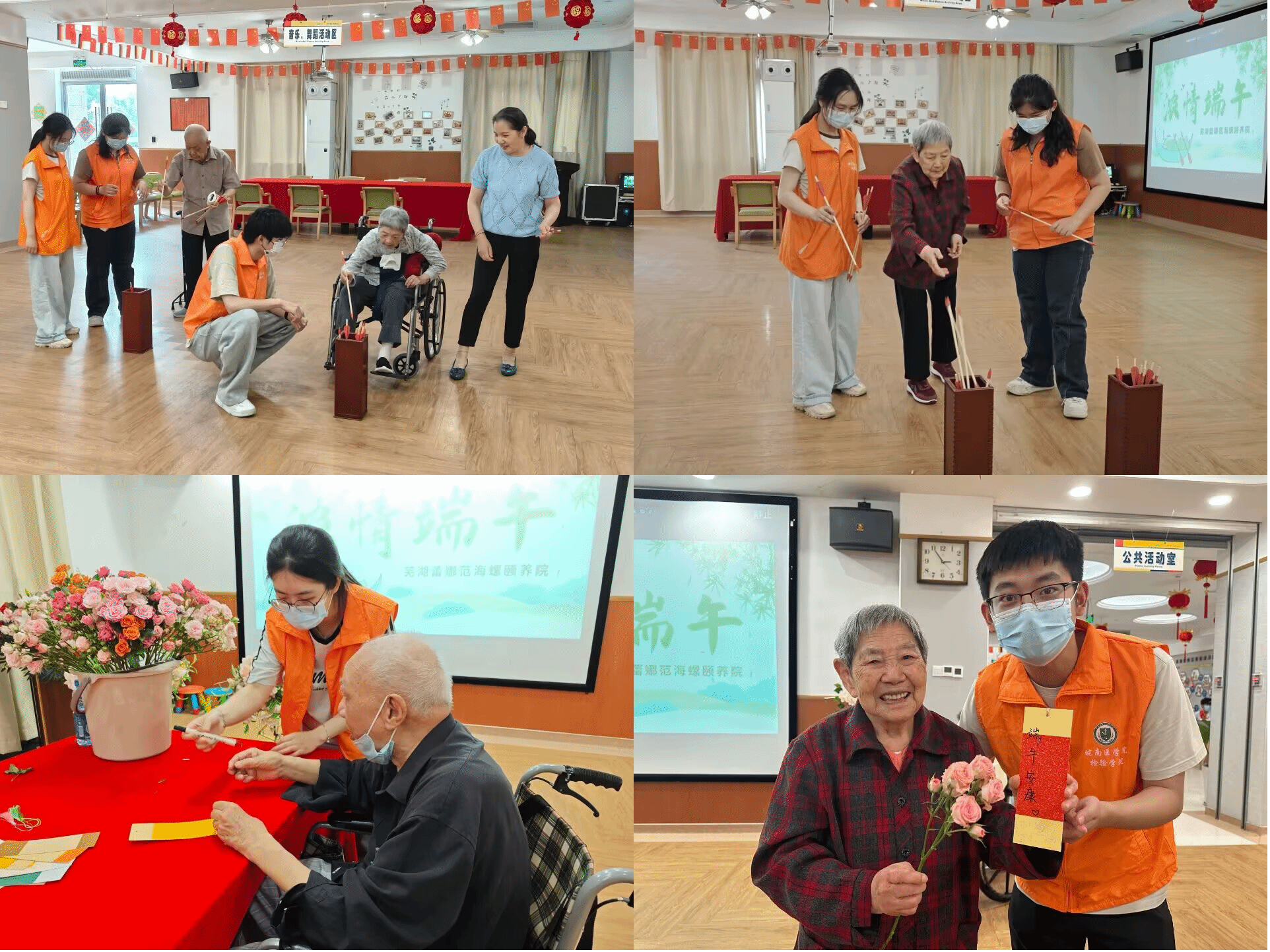 当青丝与银发在粽叶间穿梭交叠,当艾草香浸润着墨韵书香,一堂跨越代际的非遗传承课在温情中悄然展开。5月27日,检验学院成长对话志愿团以“非遗传承+健康守护+文化共创”三维志愿服务模式走进蕾娜范海螺颐养院,20名医学生志愿者与近百位长者以端午为媒,共赴一场传统与现代交融的温情之约。