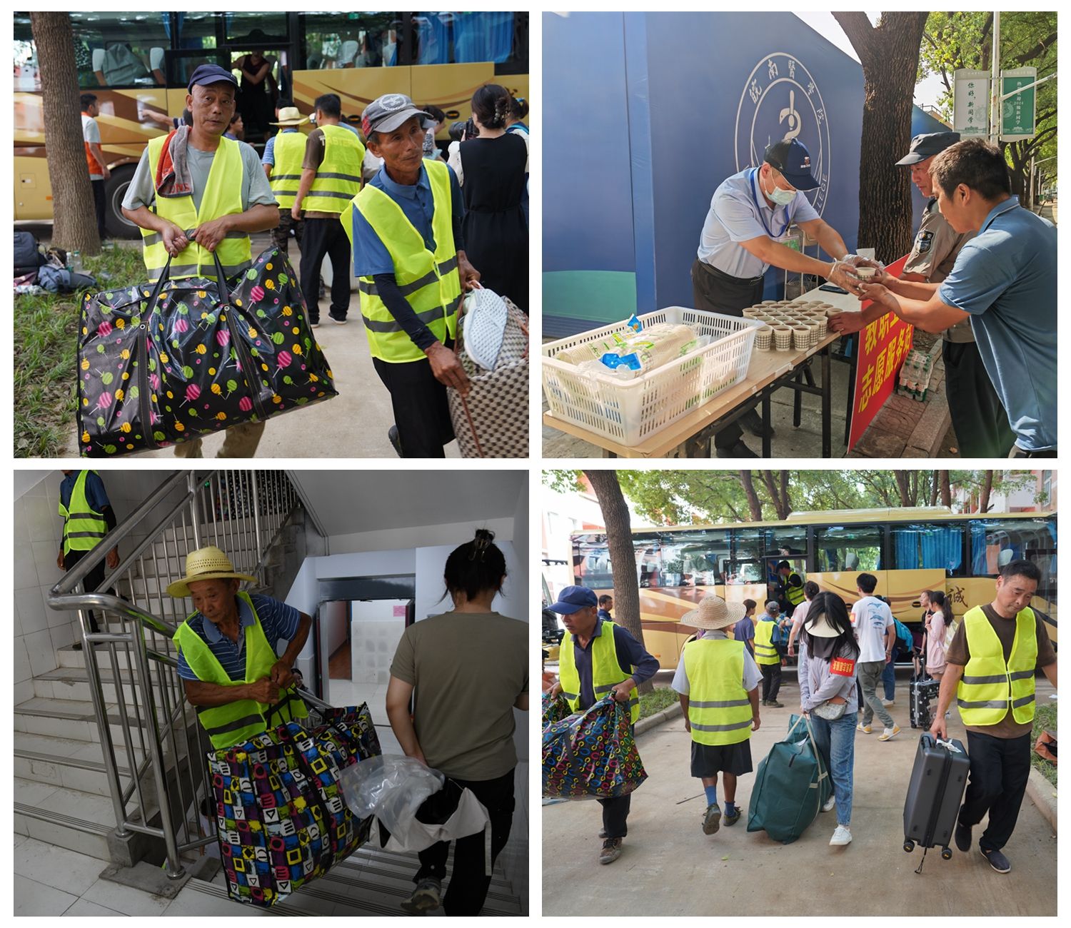 搬迁期间,学校组建了多支志愿服务队伍,包括由145名教工党员组成的党员志愿服务队、师生志愿服务队、后勤服务人员服务队等,与搬迁同学共同投入到校区搬迁工作中。虽烈日炎炎,但抵挡不住志愿者炽热的心,现场到处是志愿者忙碌的身影。大家分工明确、挺膺担当,手提肩扛、齐心协力,一次又一次穿梭于行李与车辆之间,一次又一次往返奔波于各楼层,即使汗水浸湿了衣衫却丝毫没有怨言。师生党员统一佩戴党员徽章,亮出党员身份,以身作则投入到搬迁工作中,让党旗在搬迁一线高高飘扬,让党徽在搬迁一线闪闪发光……从晨曦到日暮,在室外近40度的高温酷暑下,无论是搬运行李、疏散道路,还是解答疑问、提供指引,志愿者们都以饱满的热情和周到的服务做好各项工作,他们用劳累指数换来搬迁同学的笑脸指数、幸福指数,他们的身影成为了搬迁现场一道亮丽的风景线。