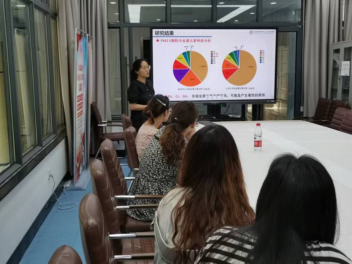马洁博士以“cGAS介导的细胞衰老在PM2.5暴露导致肺损伤中的作用”为题作学术报告。空气污染是我国当前面临的第一大环境问题,其导致的健康危害不容小觑。此次报告主要介绍了大气主要污染物PM2.5暴露导致细胞衰老效应及其相关分子机制,明确衰老效应在肺纤维化中的关键作用,为空气污染治理和健康防护提供数据支持。整个讲座内容丰富,逻辑严密,结构层次清晰。报告结束后,围绕相关问题和后续研究方向,马洁博士与参会老师进行了深入交流,场内气氛热烈。
