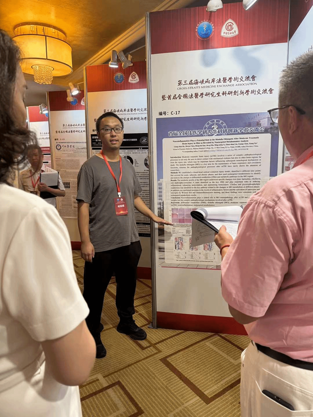 本次会议分为第三届海峡两岸法医学术交流会和首届全国法医学研究生科研创新学术交流会暨法医病理复杂死因案件鉴定交流会两个议程。法医学术交流会上,与会专家分享了最新的研究成果和经验。首届全国法医学研究生科研创新学术交流会一改往日学术活动“专家讲、大家听”的传统模式,由法医学博士后、博士研究生、硕士研究生当主角来演讲,专家提问、点评并给出指导意见。我校硕士研究生何梁超通过壁报交流向专家展示了延髓(生命中枢)在中度创伤性脑损伤后不同时期的代谢变化研究,最终获得硕士研究生组三等奖。