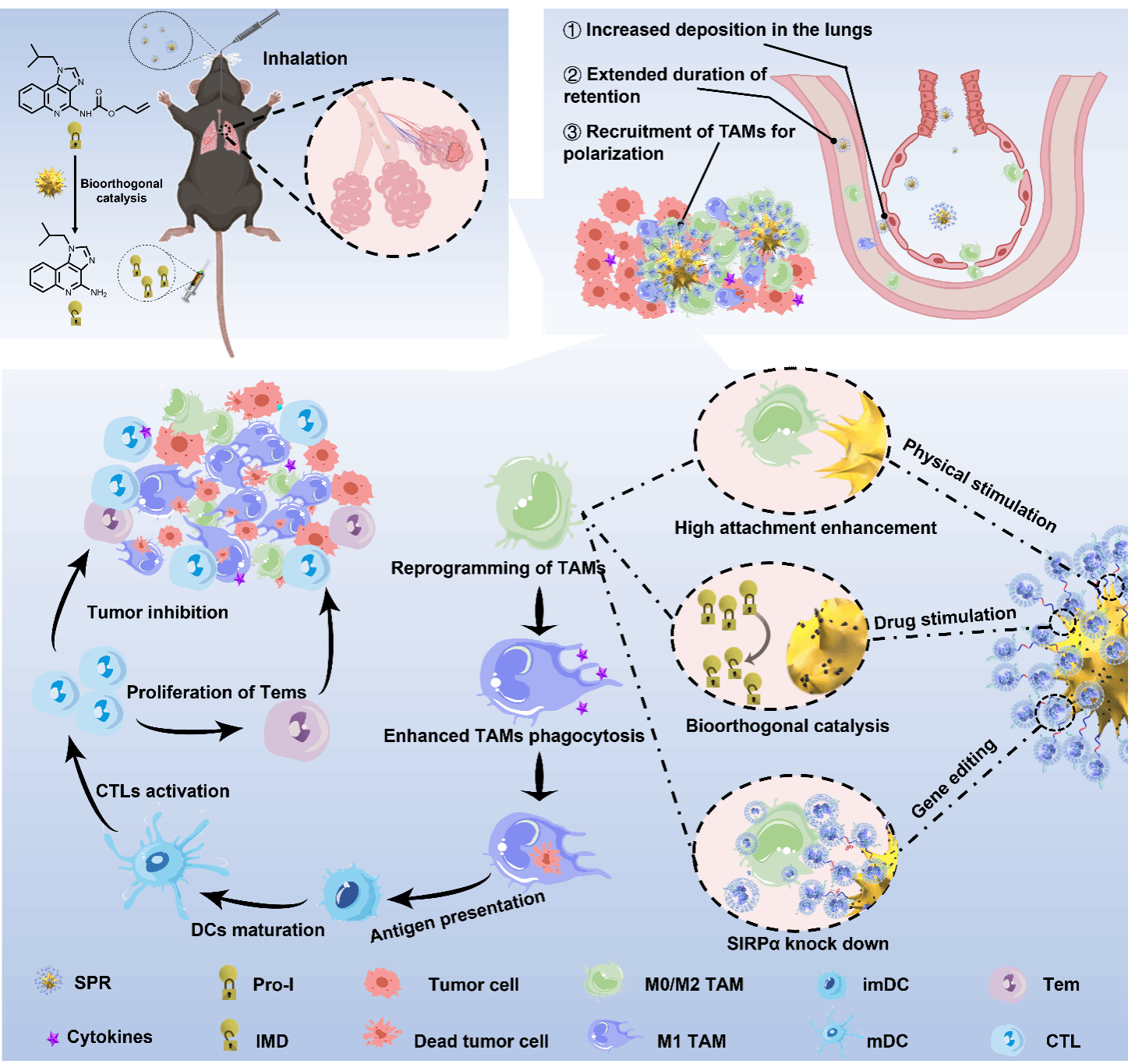 可吸入生物正交基因编辑微粒用于肿瘤免疫治疗的示意图