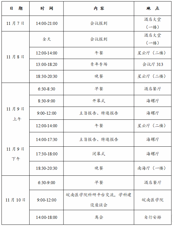 1. 11月7日下午、8日全天报到,8日下午青年专场,8日晚上嘉宾联席会议。